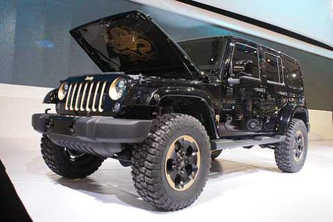 Il prototipo Jeep Wrangler Dragon Design Concept, presentata nell’ambito del Salone di Pechino 2012, integra due icone: lo storico offroad Wrangler e il drago cinese. Il drago è il simbolo della forza e della potenza, una figura associata alla regalità ed alla buona sorte. Realizzato sulla versione Rubicon per il mercato cinese di Jeep Wrangler Unlimited, il fuoristrada presenta esterni di colore nero ed hard-top in tinta con struttura a tre pannelli.