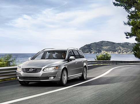 Restyling per la spaziosa wagon scandinava Volvo V70 2013, in grado di garantire il massimo comfort e una elevata cura del dettaglio, insieme ad una notevole capacità di carico, pari a ben 575 litri. tra le novità estetiche si notano le proporzioni allargate della griglia frontale, maggiori dettagli nelle rifiniture, proiettori DRL a LED per marcia diurna e cromature per esaltare un look all’insegna di lusso ed esclusività. La sezione posteriore presenta un nuovo paraurti e nuovi tubi di scarico, dettagli cromati aggiuntivi e gruppi ottici ridisegnati. L’equipaggiamento include cerchi fino a 19 pollici.