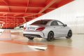 Dal punto di vista estetico spiccano il cofano motore con powerdome incastonato nel frontale e la mascherina del radiatore Matrix. La fiancata viene modellata da tre linee pronunciate, che conferiscono maggiore profondità e dinamismo. Il tetto che degrada dolcemente e la curvatura del lunotto conferiscono alla CLA un carattere da vera berlina sportiva. A richiesta è disponibile il tetto Panorama scorrevole e basculante, composto da una parte anteriore fissa in policarbonato, un elemento mobile in vetro minerale e listelli laterali in look vetro.
