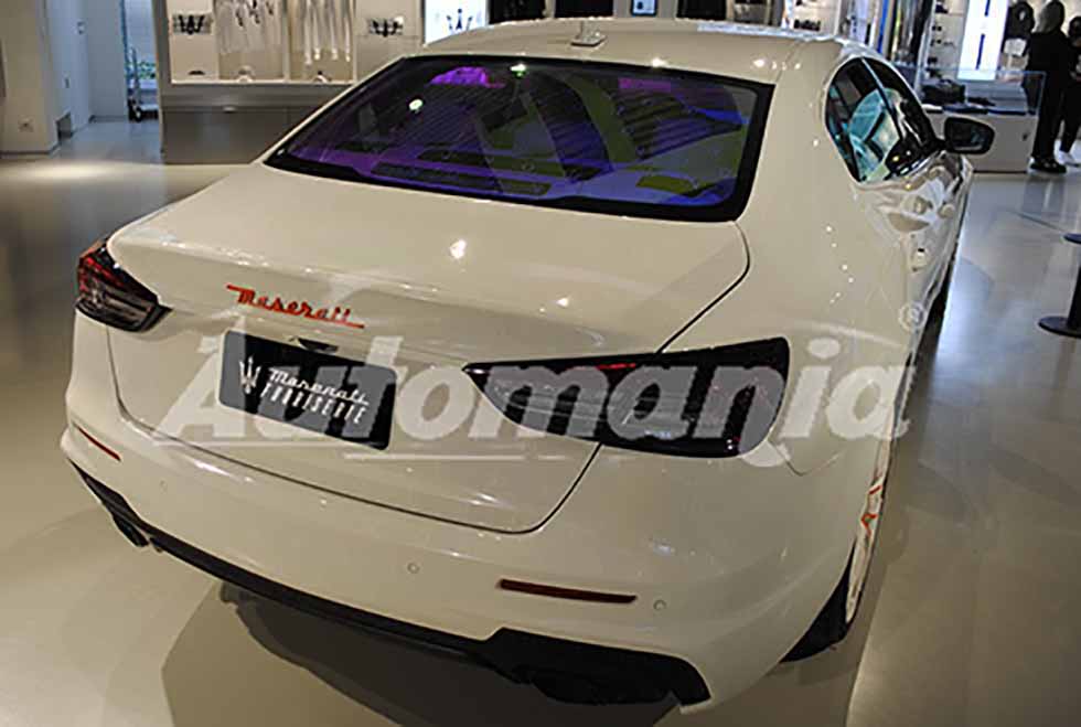 Maserati Quattroporte Fuoriserie Unica retrotreno allo Showroom Maserati di Modena al Motor Valley Fest edizione 2021 Maserati Quattroporte Fuoriserie Unica dettaglio interni allo Showroom Maserati di Modena al Motor Valley Fest 2021 Maserari Levante GT motore 4 cilindri mild Hybrid esposta allo ShowRoom Maserati di Modena al Motor Valley Fest 2021 Maserati Quattroporte Fuoriserie Unica vista posteriore allo Showroom Maserati al Motor Valley Fest 2021 di Modena